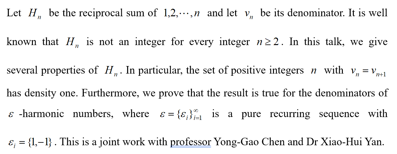 报告题目:Some Properties of Harmonic Numbers