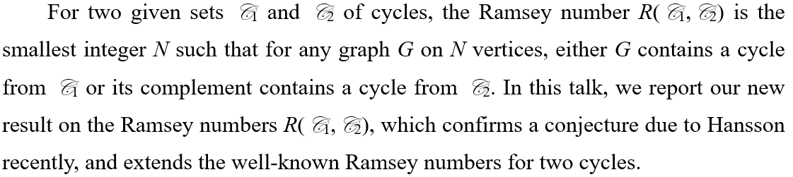 报告题目:The Ramsey Numbers of Two Sets of Cycles