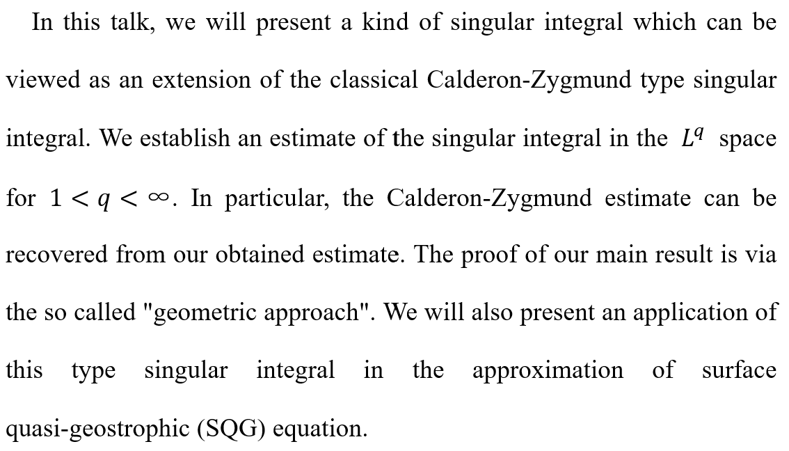 报告题目:An Extension of Calderon-Zygmund Type Singular Integral