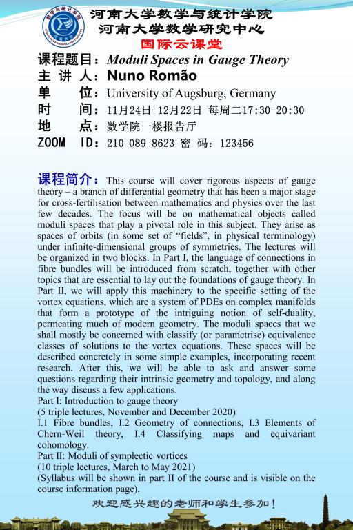 鱼虾蟹游戏 国际云课堂课程:Moduli Spaces in Gauge Theory