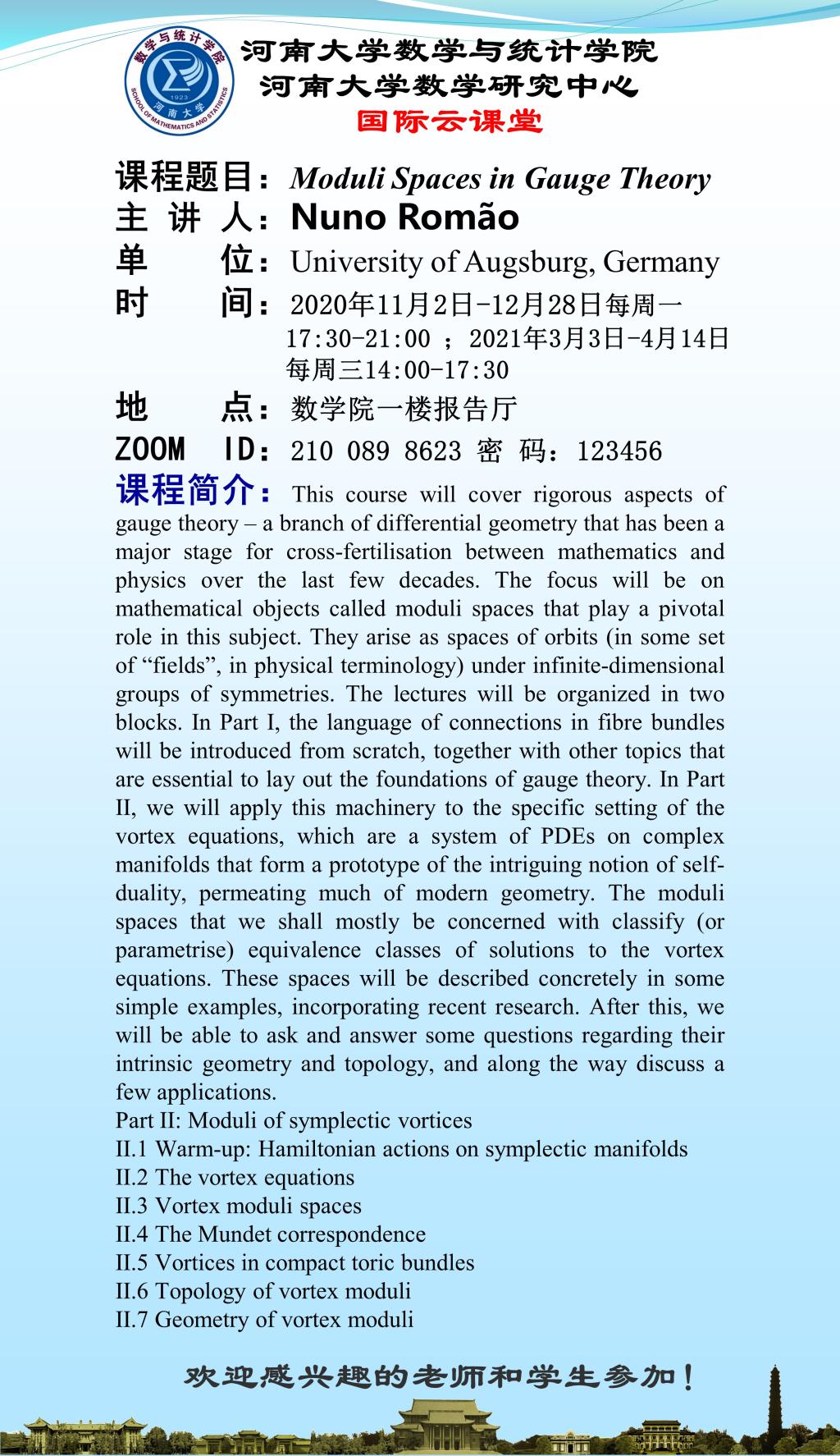 鱼虾蟹游戏 国际云课堂“Moduli Spaces in Gauge Theory”
