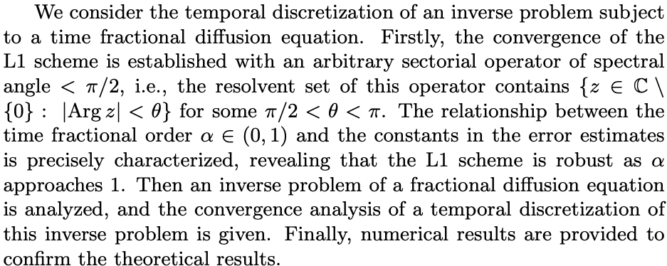 报告题目:L^1 Scheme for Solving an Inverse Problem Subject to a Fractional Diffusion Equation