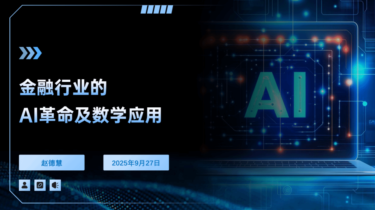 的老师们和同学们,使她不仅收获专业知识、树立奋斗目标,而且能够更加积极地面对人生。通过参加数学建模活动和竞赛,在编程、解决实际问题、团队合作等方面能力得到很大提升,为日后成功跨入金融行业打下坚实基础。她结合多年的金融从业经验,分享了金融行业概述、人工智能革命、金融数学应用与金融就业展望等四个方面的内容。她介绍了概率论与统计分析、区块链中的密码学原理、机器学习算法、深度学习等在金融领域中的应用,鼓励同学们要坚定专业思想、打好数学功底、提高实践能力,并展望适合数学专业就业的金融行业岗位:银行科技岗、保险精算师、证券投行部等。最后,赵德慧回顾了毕业20年的心路历程,最感谢成为河南大学学子,并鼓励同学们遇到行业寒冬时不要灰心,要照顾好自己的身体,坚信自己。