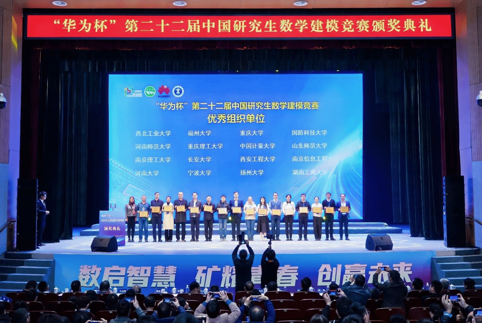 12月6-7日,由教育部学位管理与研究生教育司指导,中国学位与研究生教育学会、中国科协青少年科技中心主办“华为杯”第二十二届中国研究生数学建模竞赛颁奖大会在中国矿业大学(徐州)进行,我校研究生共斩获一等奖1项、二等奖17项、三等奖27项,学校荣获优秀组织奖,获奖总数再攀高峰,获奖等级取得历史性突破。