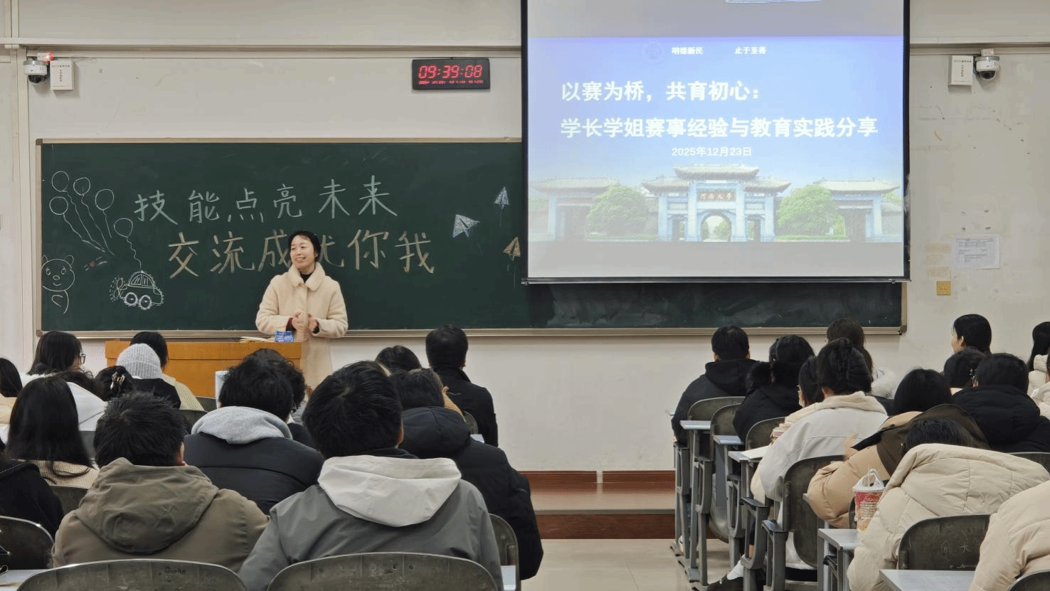 于12月23日举办了主题为“以赛为桥,共育初心”的学长学姐赛事经验与教育实践分享会。本次分享会由数学教育方向带头人张玉环老师组织,程永胜老师莅临指导,学科教学(数学)专业研究生及部分师范专业本科生参加。