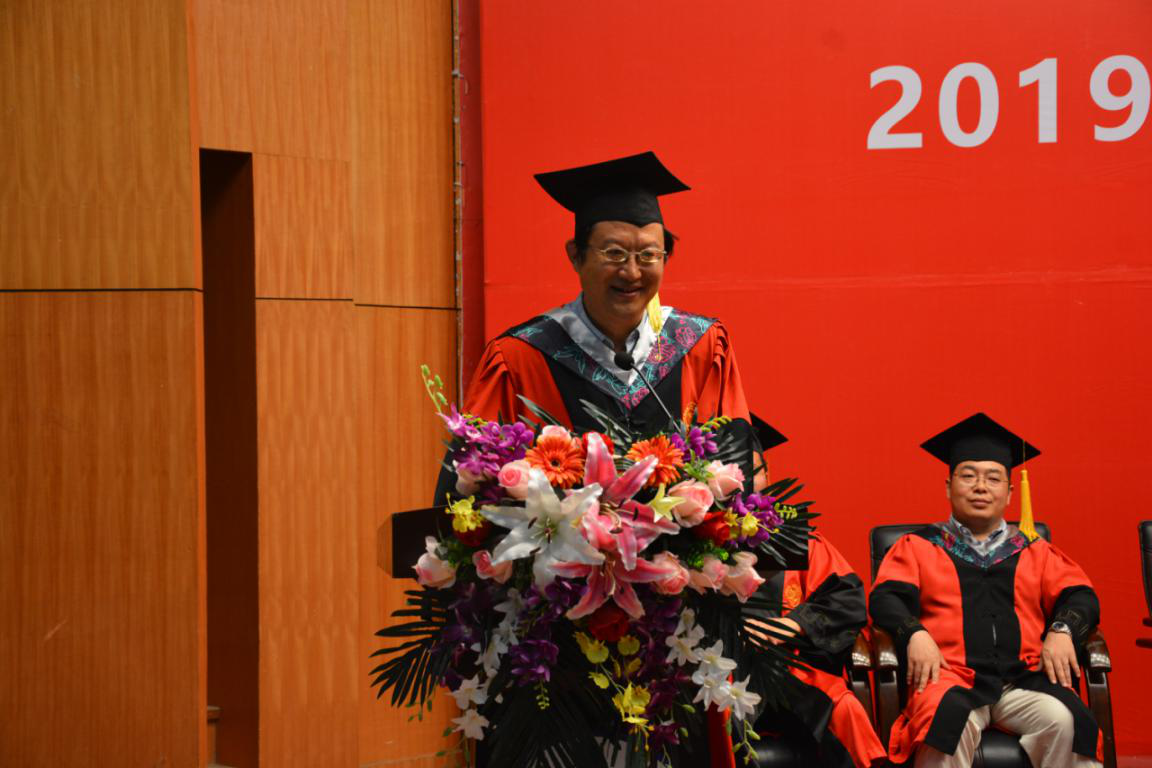 领导班子全体成员、学位委员会委员、教师代表、各部门负责人及2019届毕业生共200余人参加了典礼。典礼由鱼虾蟹游戏