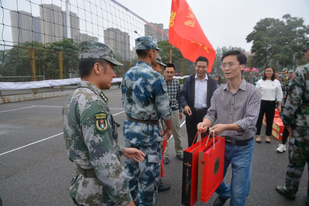 党委书记史富强、党委副书记赵红磊、副院长杨一平等一行来军训场地,带着提前准备的月饼,为2019级承训官兵和新生们送上中秋祝福。