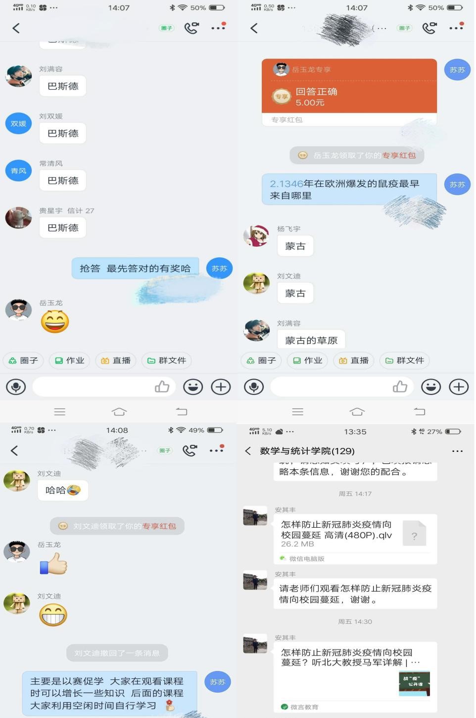 师生收获了面对新冠病毒有效的预防知识,进一步增强了防控意识,同时也坚定了战胜疫情的决心及信心。“通过这次公开课,让我了解到了很多关于新冠肺炎相关知识,相信我们一定能战胜疫情”、“这次公开课不仅消除了我对新冠肺炎的恐惧,而且让我对相关知识产生了一些兴趣”、“现在我可以更好的规划和思考这段时期的学习生活,也希望疫情早日结束,我们可以早日回到学校正常上课”、“相信以后人类可以更好的思考与大自然的关系,珍惜我们的生活”......公开课后,大家纷纷表达了自己的看法以及对生活的希望。
