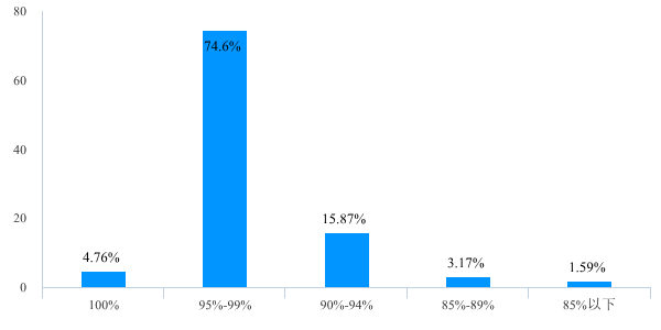 对于学生参与线上学习的积极性方面,79.36%的课程学生出勤率在95%以上,95.23%的课程学生出勤率都在90%以上,对于出勤率低于85%的课程,鱼虾蟹游戏