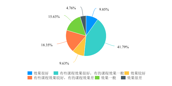 线上课程教学效果较好,对绝大多数的课程满意度较高;但同时也有一些课程,由于各种原因,同学们表示在线上学习中遇到困难。