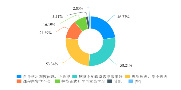针对同学们反映较多的居家线上学习中经常出现注意力不集中,学习效果较差的现象,本次也做了调查,出现这种情况的原因也集中在以下几个主要方面: