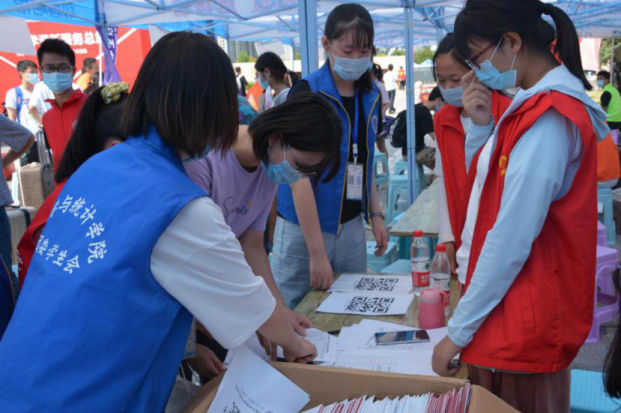 烈日炎炎,校门外却一直有迎新团队的身影,保证每一位数院新生都能及时得到积极地迎接与帮助。因疫情原因,学生家长不能进入校园,于是2019级的学长学姐们给“小20”们当起了哥哥姐姐,进校门、迎新站点报到、办理入学手续、宿舍入住,每一个流程都有迎新人员的陪伴与帮助。报到时发放的新生物品袋中,有学长学姐们精心准备的矿泉水、小扇子、学校地图和新生手册等小物品,温馨又实用。迎新“一条龙”式服务,使得家长放心,学生安心,也让新生们能更快地接受校园生活,融入到“河大”这个大家庭中来。