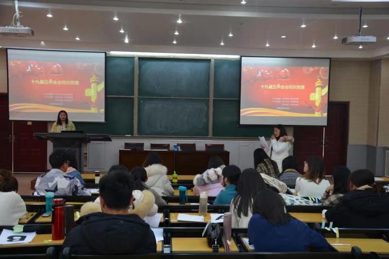 三个研究生党支部于12月3日中午,在院北阶梯教室联合举办党的十九届五中全会知识竞赛。院党委联系三个支部领导——党委书记史富强、党委副书记赵红磊、副院长王波,以及研究生第三党支部书记、研究生辅导员罗勍,三个支部全体研究生党员、入党积极分子代表出席活动。竞赛由研究生第二党支部支部书记康昆鹏和研究生第三党支部组织委员杨美霞联袂主持。