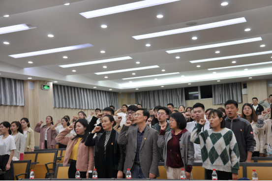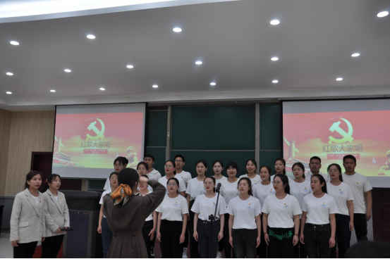 南阶教室开展“爱国爱党 ”主题红歌比赛。赛前,罗勍带领全体人员重温入党誓词。