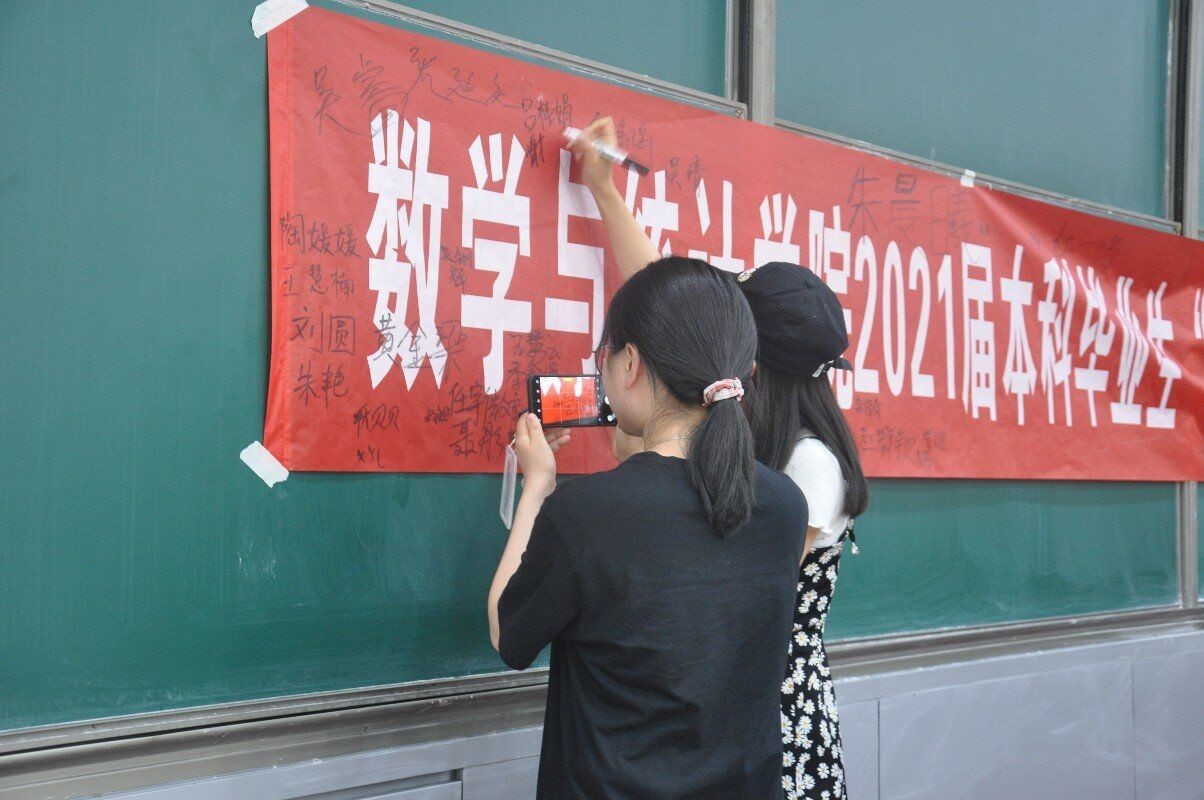 2021届本科毕业生们以人民币一元为起点,有序地排队献出自己的爱心,进行捐款并签名合影留念。院党委副书记赵红磊、2017级辅导员安其丰莅临现场,为活动做指导。随后,两位老师代表鱼虾蟹游戏