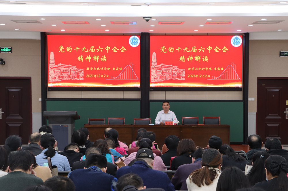 南阶梯教室为全体师生党员作题为《党的十九届六中全会精神解读》的专题报告。