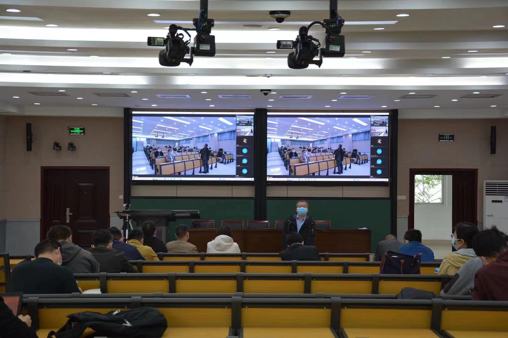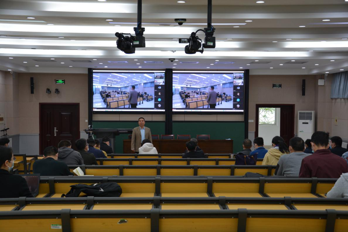 南阶教室参会,其他教职工在线上参加会议。本次会议由院党委书记史富强主持。